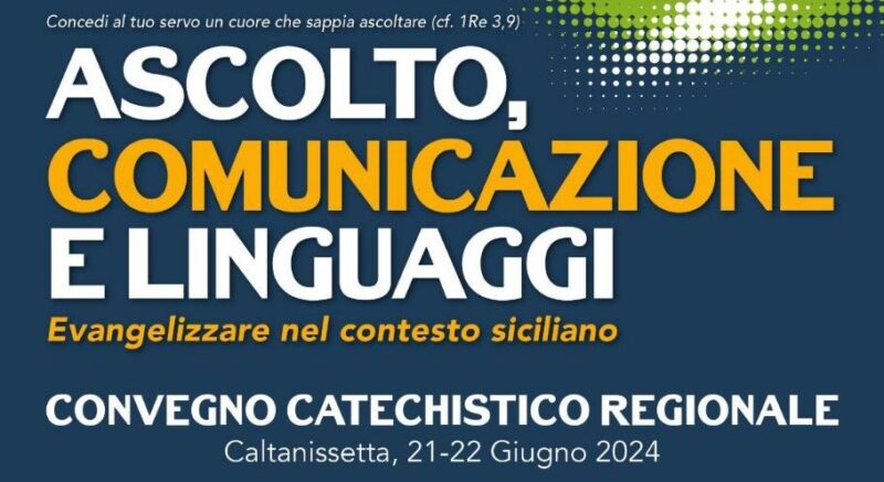 “Ascolto, comunicazione e linguaggi. Evangelizzare nel contesto siciliano” è il titolo del Convegno Catechistico Regionale che si terrà a Caltanissetta il 21 e 22 giugno, promosso dall’Ufficio catechistico nazionale e organizzato dall’Ufficio catechistico regionale CESi, insieme con l’Ufficio regionale per le Comunicazioni Sociali e la Commissione presbiterale siciliana.