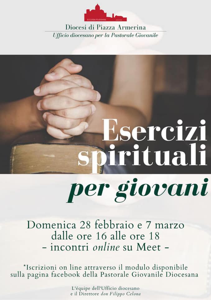 Organizzati dall’Ufficio diocesano di Pastorale giovanile, il 28 febbraio e il 7 marzo (dalle ore 16 alle ore 18) avranno luogo gli esercizi spirituali per ragazzi e giovani. Gli Esercizi, a causa dell’emergenza sanitaria in atto si svolgeranno on line attraverso la piattaforma Meet. Le iscrizioni al seguente link