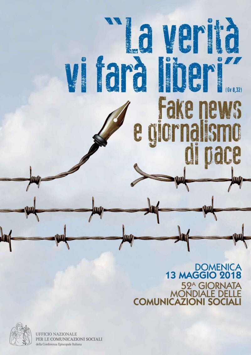 In occasione della Giornata mondiale delle Comunicazioni Sociali, che si celebra nella domenica dell’Ascensione, pubblichiamo il messaggio del Santo Padre Francesco, dal tema “La verità vi farà liberi. Fake news e giornalismo di pace”, diffuso il 24 gennaio scorso nella festa di San Francesco di Sales., patrono dei giornalisti. Messaggio-del-Santo-Padre.docx (270 download )