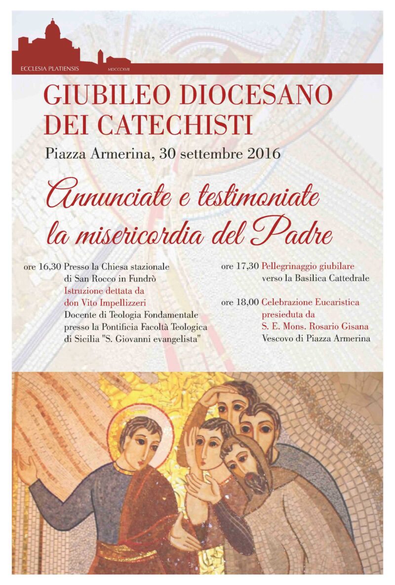 Venerdì 30 settembre a Piazza Armerina avrà luogo il Giubileo diocesano dei catechisti, dal tema “Annunciate e testimoniate la misericordia del Padre”. Alle ore 16.30 nella chiesa stazionale di Fundrò avrà luogo l’istruzione dettata da don Vito Impellizzeri, docente di Teologia Fondamentale presso la Pontificia Facoltà Teologica di Sicilia “S. Giovanni evangelista” di Palermo. Seguirà il Pellegrinaggio giubilare verso la Basilica Cattedrale dove intorno alle ore 18 il vescovo mons. Rosario Gisana presiederà la Celebrazione Eucaristica.