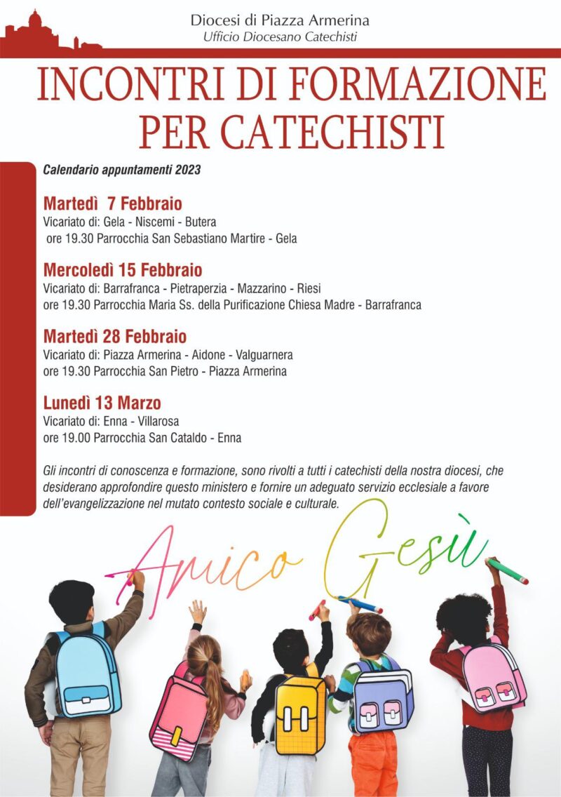 L’ufficio catechistico diocesano, organizza degli incontri di formazione rivolti a tutti i catechisti della diocesi “che desideranno approfondire questo ministero e fornire un adeguato servizio ecclesiale a favore dell’evangelizzazione nel mutato contesto sociale e culturale.