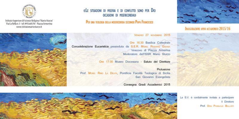 Pertanto la Prolusione dell’anno accademico 2015-2016 ripercorrerà l’insegnamento del Vescovo di Roma con il seguente tema: “«Le situazioni di miseria e di conflitto sono per Dio occasioni di misericordia» Per una teologia della misericordia secondo Papa Francesco”.