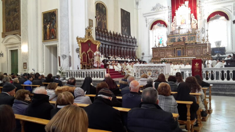Piazza Armerina 18 aprile 2019 – Giovedì Santo. Ha avuto luogo questa mattina in Cattedrale la celebrazione della Messa Crismale presieduta dal vescovo mons. Rosario Gisana e concelebrata da tutti i sacerdoti della diocesi con la presenza dei religiosi, dei diaconi, dei seminaristi delle religiose dei consacrati e dei fedeli.