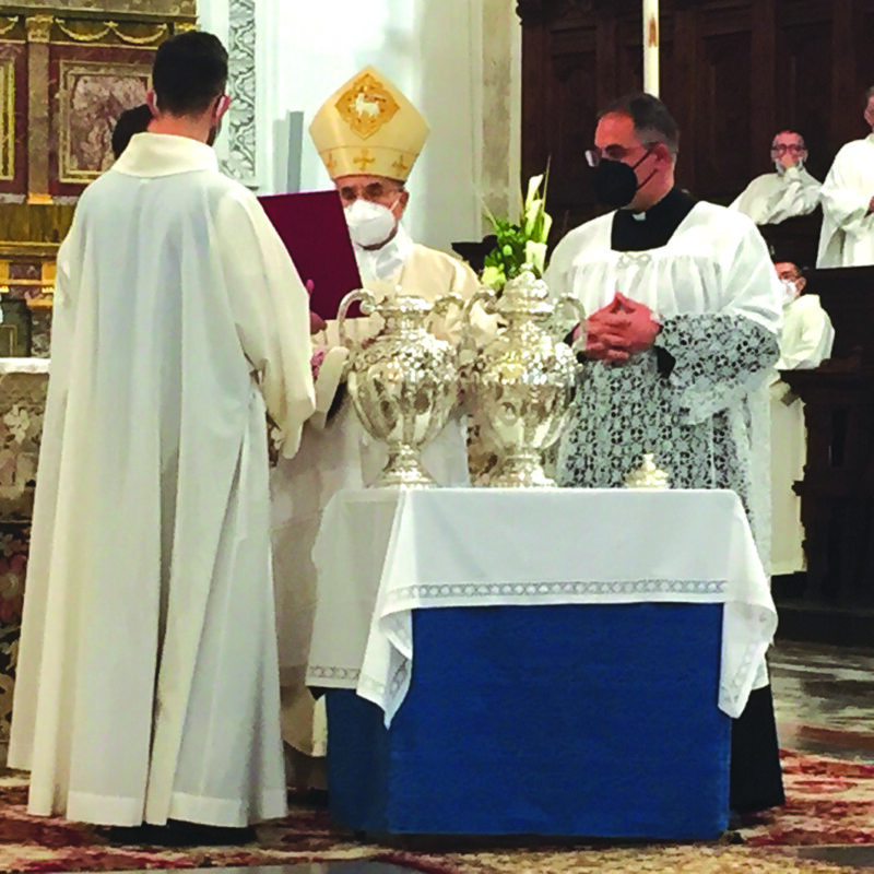 Ha avuto luogo lo scorso venerdì 7 maggio, nella Basilica Cattedrale la celebrazione della Messa Crismale durante la quale il Vescovo ha consacrato il crisma e benedetto gli olii dei catecumeni e degli infermi. Alla celebrazione presieduta dal Vescovo mons. Rosario Gisana hanno partecipato tutti i sacerdoti della Diocesi, i diaconi, i religiosi, gli alunni del Seminario diocesano e un rappresentante per ogni parrocchia della Diocesi. L’omelia del Vescovo