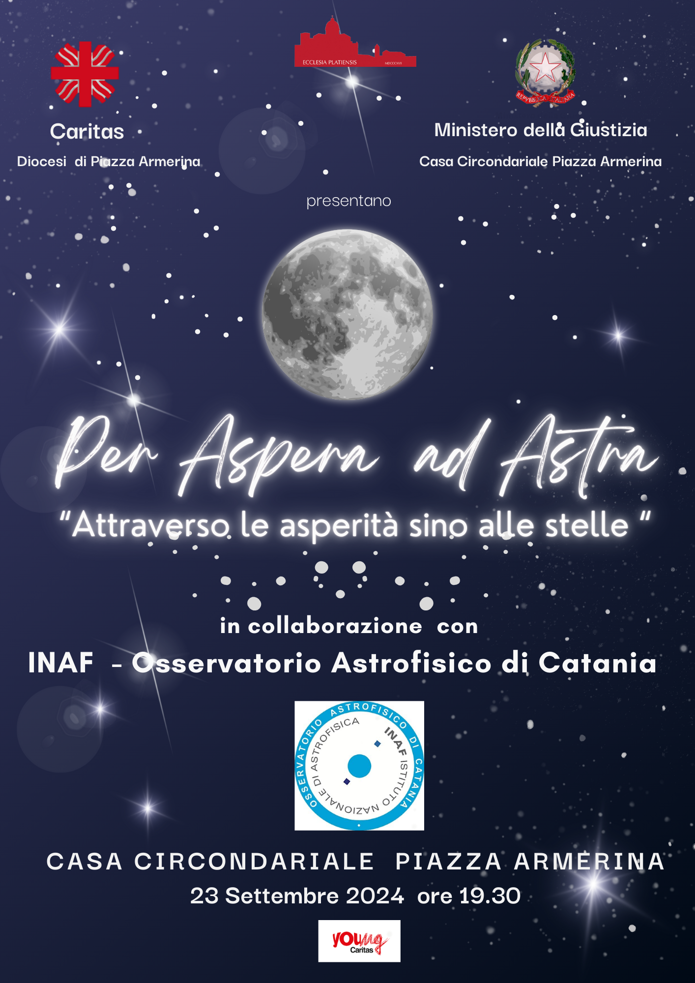 “Per aspera ad Astra” è una iniziativa della nostra Caritas e della Casa Circondariale di Piazza Armerina in collaborazione con l’INAF (Istituto Nazionale di Astrofisica di Catania) con il coinvolgimento dei giovani di Young Caritas della diocesi.