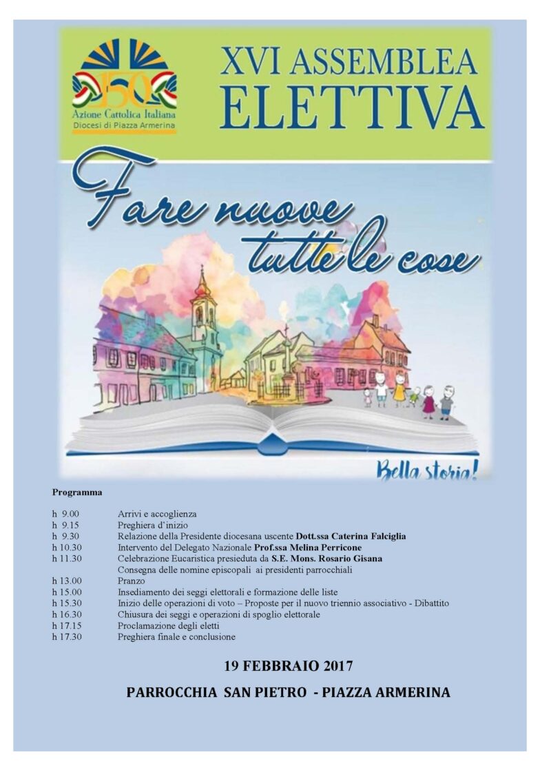 Domenica 17 febbraio i soci dell’Azione Cattolica sono convocati a partire dalle ore 9, presso i locali della chiesa di San Pietro in Piazza Armerina per eleggere il nuovo direttivo.