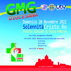 Avrà luogo il 26 novembre solennità di Cristo Re dell’universo la GMG per i giovani della Diocesi. Organizzata in sinergia dagli uffici diocesani Pastorale giovanile, vocazionale e dall’Azione Cattolica diocesana, la GMG diocesana si svolgerà presso la parrocchia Maria Ausiliatrice e San Giovani Bosco di Butera. Tema della giornata che avrà inizio alle 15 “Dio ha scelto ciò che nel mondo è debole per confondere i forti” 1Cor 1,27.