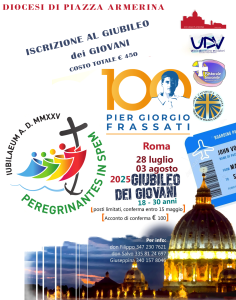 Sono aperte le iscrizioni per la partecipazione dei ragazzi e dei giovani della Diocesi di Piazza Armerina alle giornate del prossimo Giubileo degli adolescenti e del Giubileo dei Giovani che si terranno rispettivamente dal 24 al 28 aprile 2025 e dal 28 luglio al 3 agosto 2025. I due pellegrinaggi sono organizzati dell’équipe composta dagli uffici di pastorale giovanile, pastorale per le vocazioni e dall’azione … Continue reading “SEGNA LA DATA”. GIUBILEO DEGLI ADOLESCENTI E DEI GIOVANI