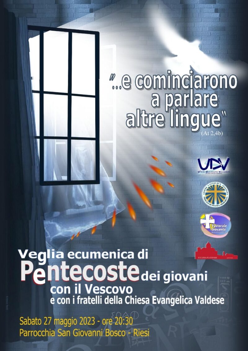 Organizzata dagli uffici diocesani di Pastorale Giovanile, Vocazionale e dall’Azione Cattolica diocesana, sabato 27 maggio alle ore 20.30 a Riesi presso la parrocchia San Giovanni Bosco avrà luogo una Veglia ecumenica di Pentecoste dei giovani con il Vescovo e con i fratelli della Chiesa Valdese. Tema della Veglia “… e cominciarono a parlare altre lingue”
